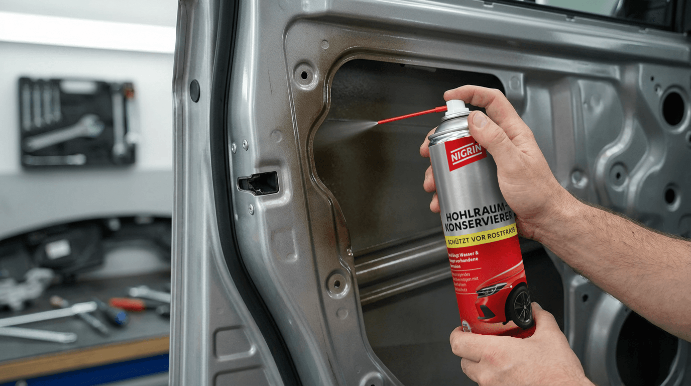 Der NIGRIN Hohlraum-Konservierer schützt zuverlässig vor Rostfraß in Karosserie-Hohlräumen wie Türen, Kotflügeln oder Kofferraumdeckeln. Die Kombination aus hochwertigen Wachsen und aktiven Kriechmitteln bildet einen dauerelastischen Schutzfilm, der Feuchtigkeit verdrängt und vorhandenen Rost wirksam stoppt.