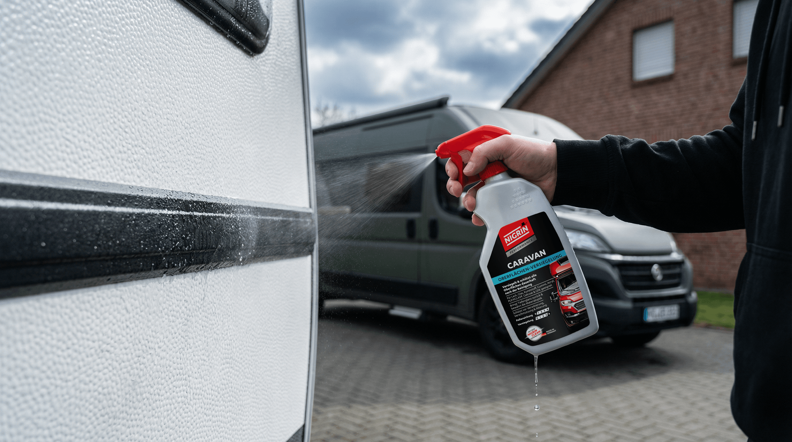 Der NIGRIN Caravan Hartwachs-Lackschutz wurde speziell für die Pflege großer, lackierter Außenflächen an Wohnmobilen, Caravans und Anhängern entwickelt. Die hochwertige Hartwachsformel versiegelt die Oberfläche langanhaltend gegen Witterungseinflüsse, UV-Strahlung, Schmutz und Regenstreifen und bringt den Lack gleichzeitig wieder zum Glänzen.