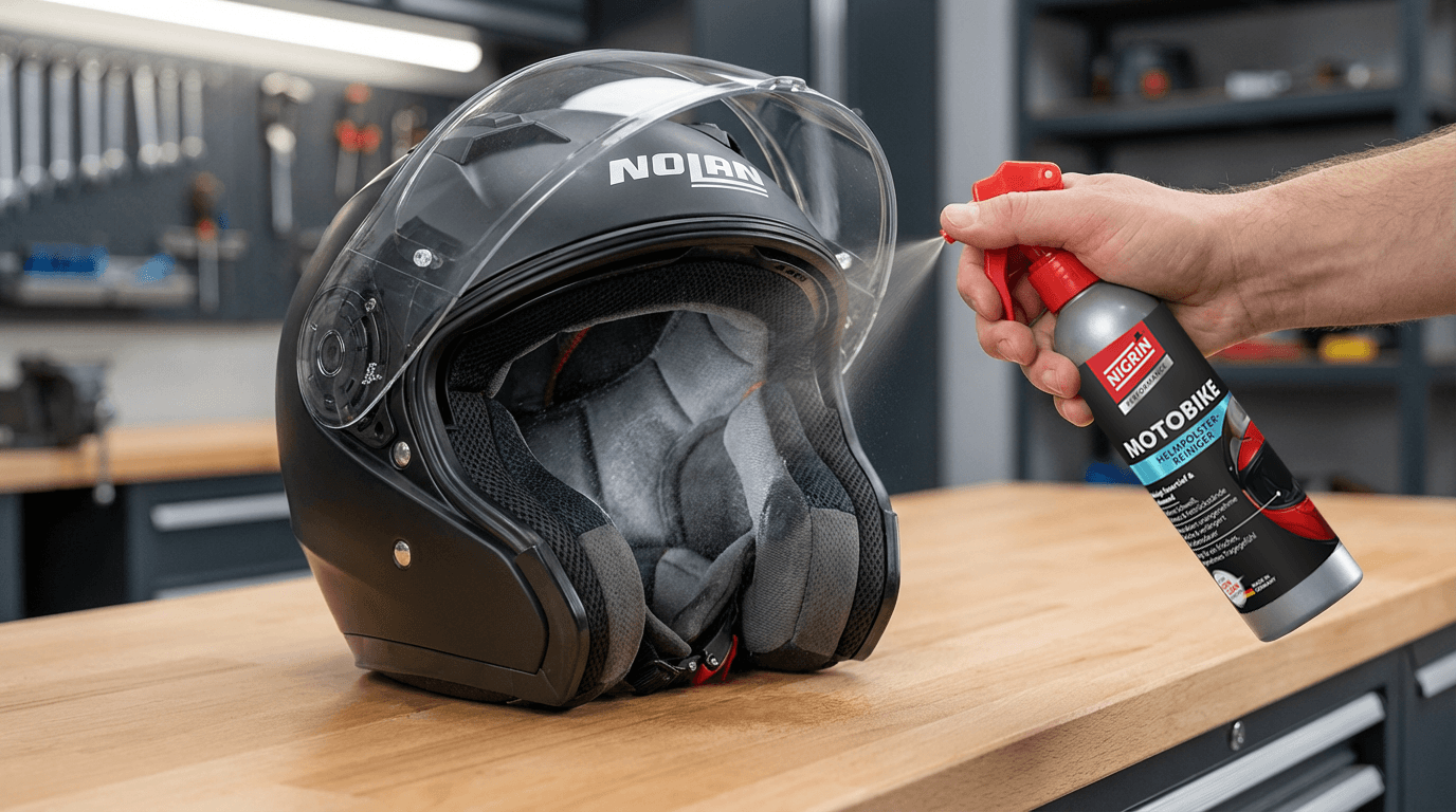 Der NIGRIN Moto-Bike Helmpolster-Reiniger sorgt für hygienische Frische im Helm – ohne umständlichen Ausbau der Innenpolster. Die effektive Schaumformel dringt tief in die Fasern ein und entfernt zuverlässig Schweiß, Staub, Schmutz und Fettrückstände.