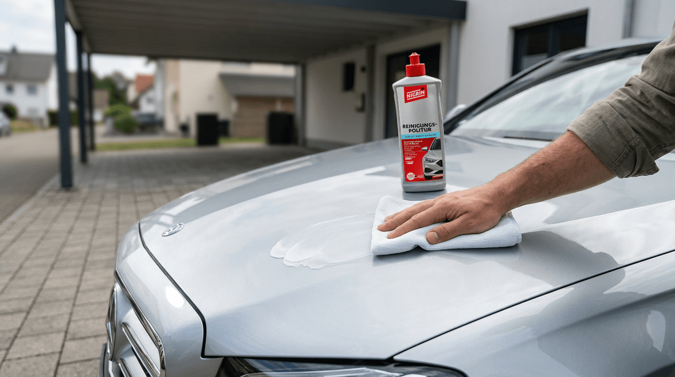Die NIGRIN Reinigungs-Politur ist eine effektive Kombination aus Lackreiniger und Politur für beanspruchte und verwitterte Lacke. Sie entfernt sanft Oxidationen, leichte Kratzer sowie Mattstellen und stellt die ursprüngliche Farbtiefe und den Glanz des Lacks wieder her. Gleichzeitig hinterlässt sie eine schützende Versiegelung, die vor Umwelteinflüssen schützt und die Oberfläche glättet.